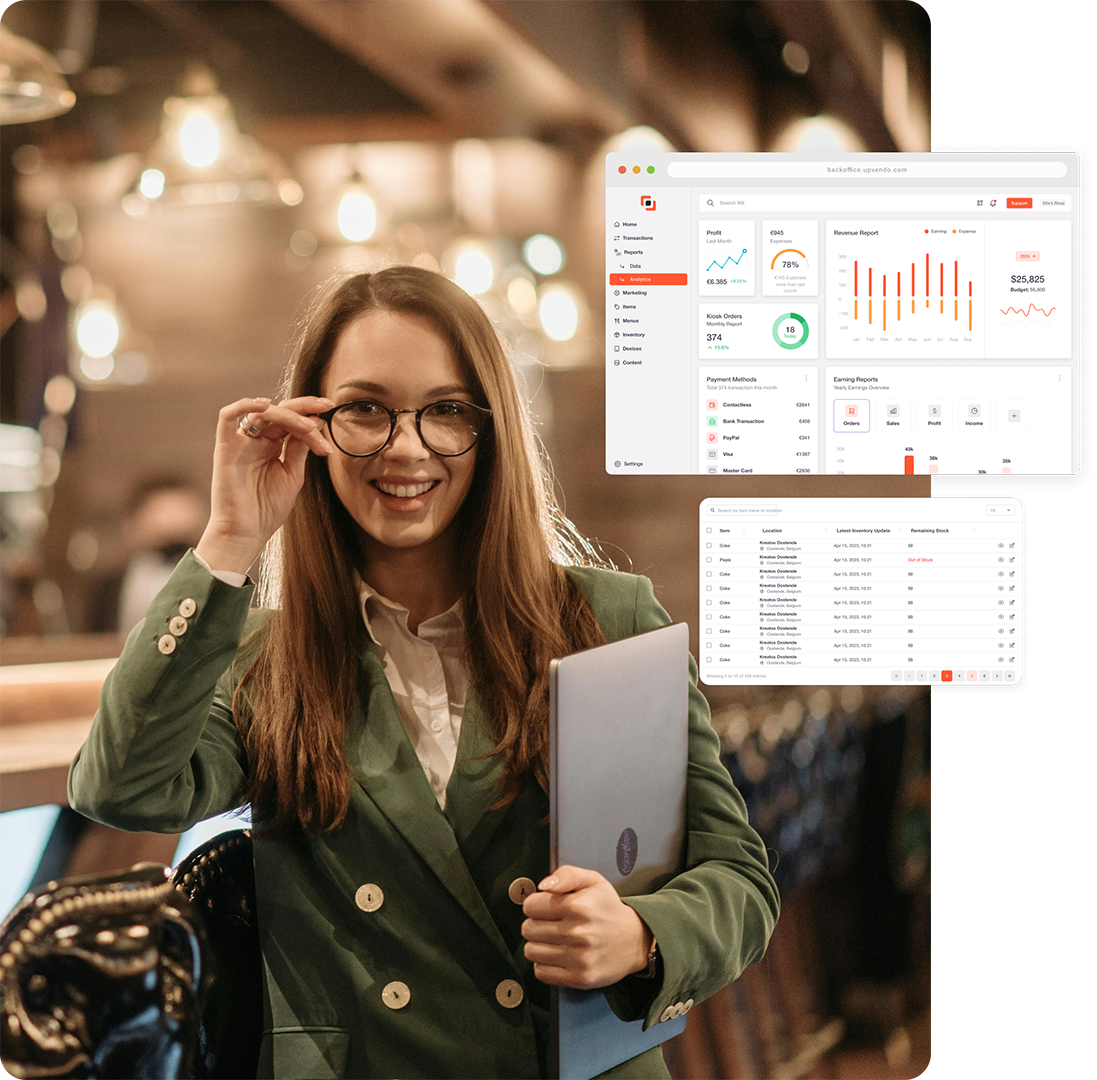 Les kiosques Upvendo vous permettent de mettre à jour facilement les plats du jour et de marquer les articles en rupture de stock en temps réel, tout comme votre système de point de vente, garantissant ainsi des opérations fluides et efficaces.