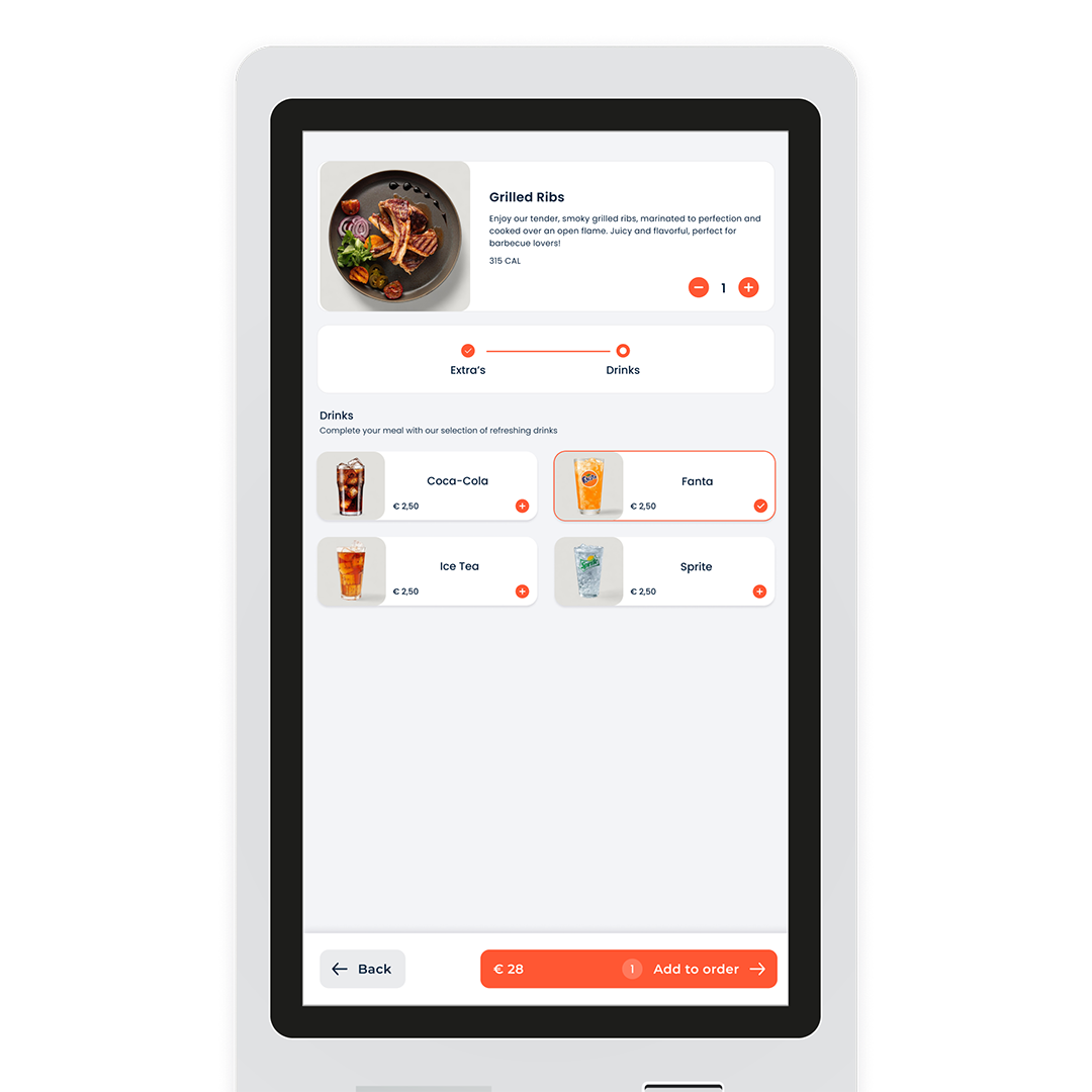 Les kiosques Upvendo permettent aux clients de passer et de personnaliser leurs commandes de manière autonome, ce qui simplifie le processus de commande et réduit le temps d'attente.
